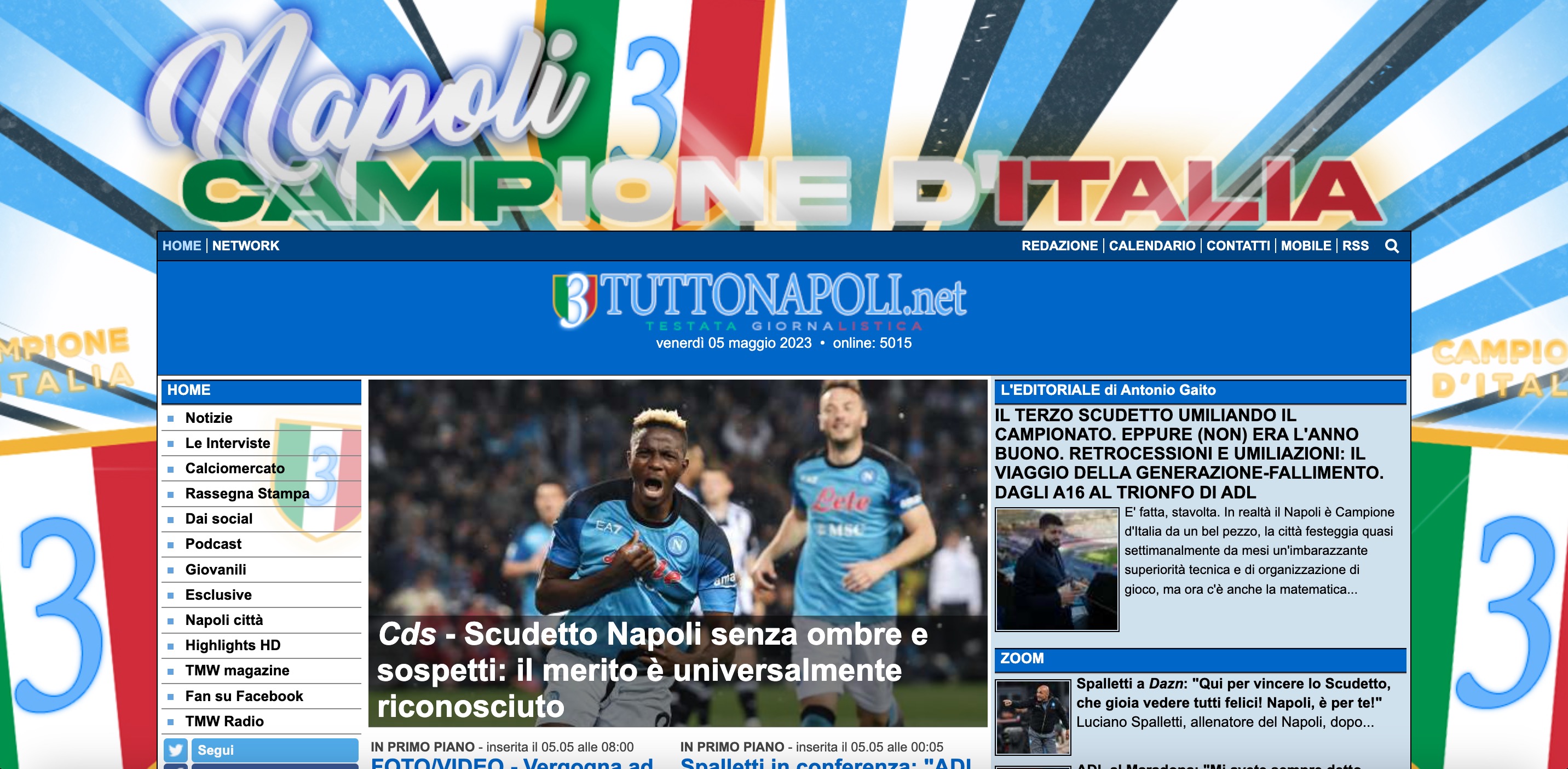 FOTO - Lo Scudetto su Tuttonapoli: la nostra home page cambia versione per il tricolore!