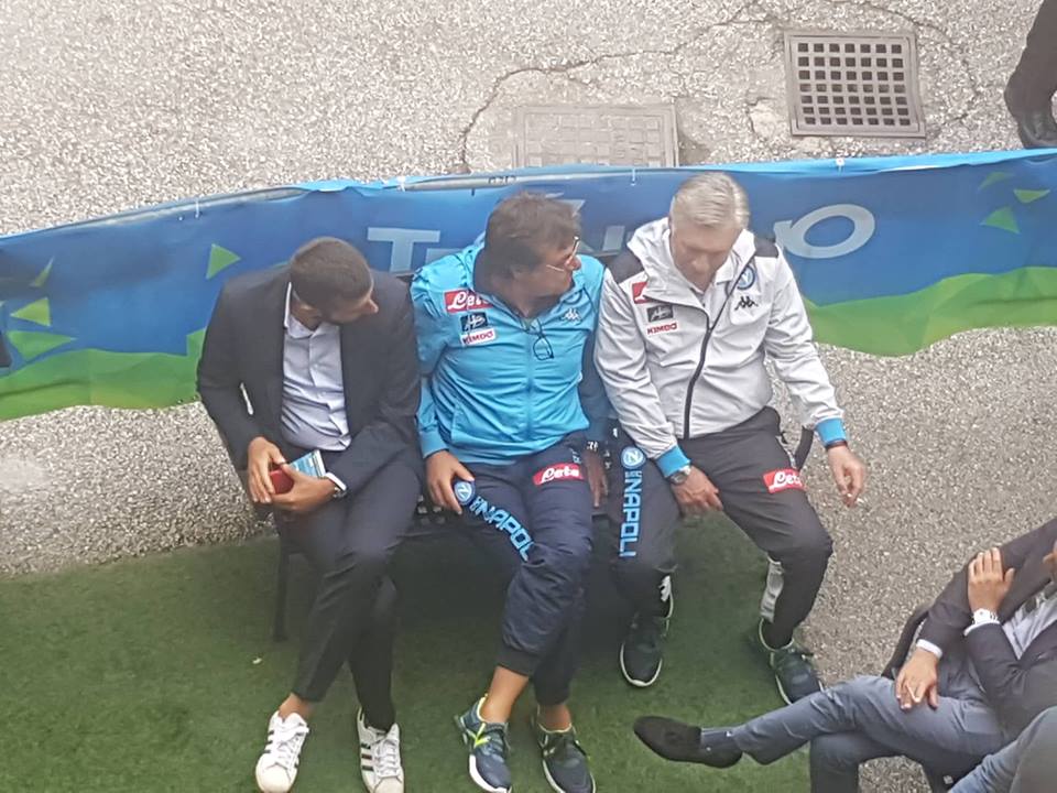 FOTO TN - Ancelotti in stile... Sarri. Il mister fuma con Giuntoli appena arrivato a Trento