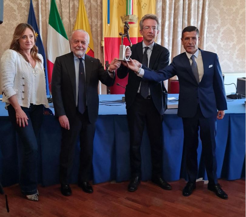 E' in corso a Palazzo San Giacomo la cerimonia in cui il sindaco di Napoli, Gaetano Manfredi, è stato omaggiato dal manager di Diego Armando Maradona, Stefano Ceci, di una copia in miniatura della statua di Diego. installata allo stadio. Ha preso parte all'evento anche Aurelio De Laurentiis, a cui è stata consegnata una riproduzione in edizione limitata del piede sinistro del Pibe de Oro.