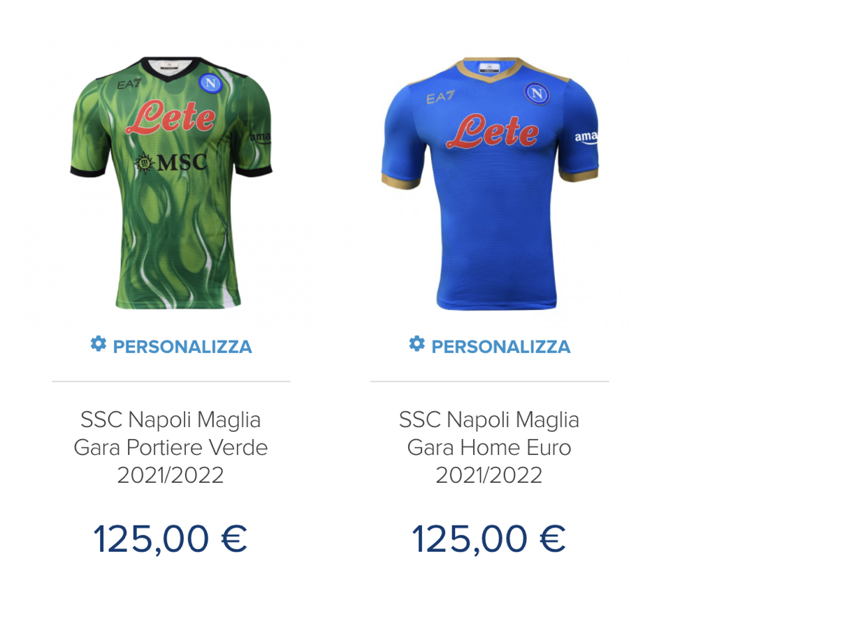 Sono disponibili altri prodotti sul web-store ufficiale del Napoli che nei prossimi mesi si arrichhirà sempre più. Nelle ultime ore sono disponibili le maglie da gioco - sia dei portieri che dei giocatori di movimento - utilizzate per l’Europa League. Inserti oro su spalla, su maniche e sui lati della maglia. Il prezzo è di 125 euro senza costi aggiuntivi per la personalizzazione.