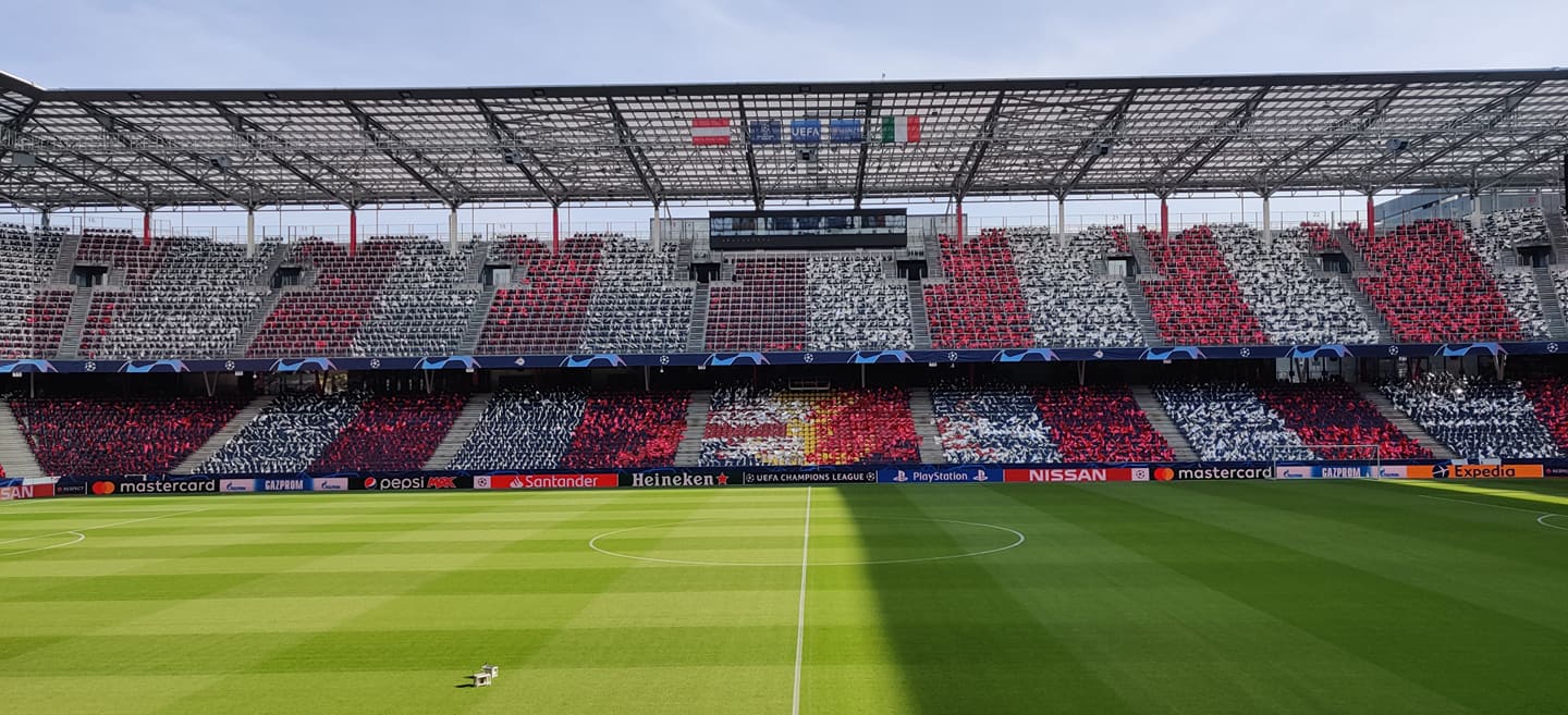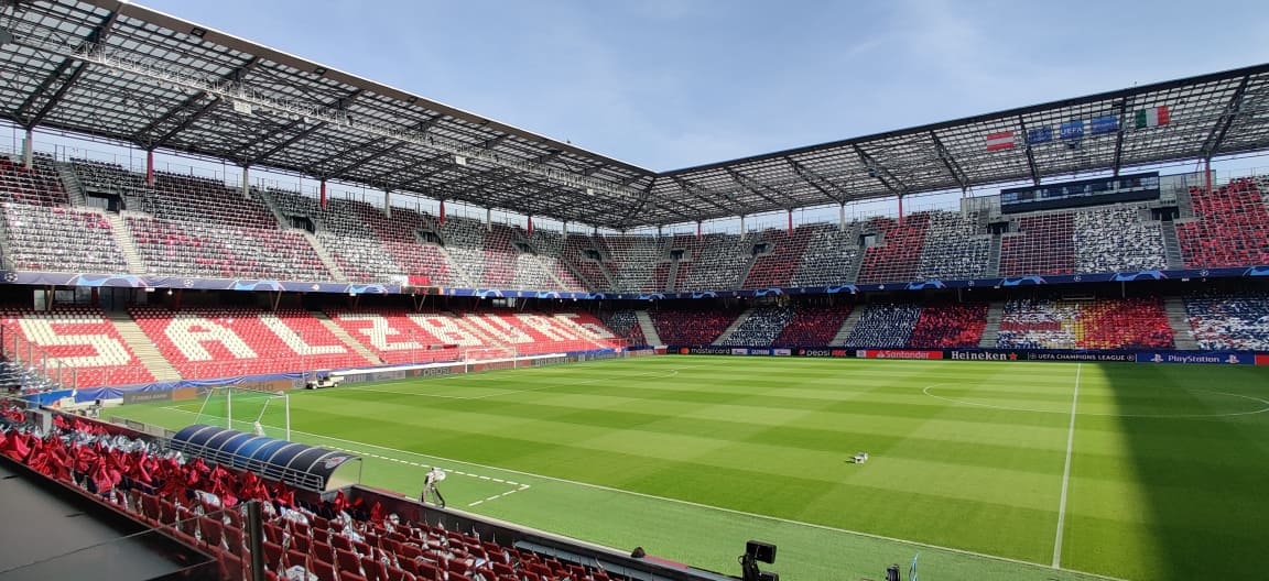 E' già tutto pronto alla Red Bull Arena di Salisburgo, per il match che vedrà domani la squadra austriaca ospitare il Napoli di Ancelotti. L'impianto è già stato 'addobbato' per la coreografia che accoglierà i giocatori in campo domani sera, come mostrano le immagini raccolte dal nostro inviato a Salisburgo. Grande attesa per la sfida di domani con il Salisburgo che ha invitato i tifosi a recarsi in tempo per l'ingresso delle squadre in modo da poter partecipare alla coreografia che coinvolgerà tutto lo stadio. Il club austriaco ha ricordato anche le diverse attività previste all'esterno dello stadio, con tanto di Dj che accompagnerà il pre-partita.
