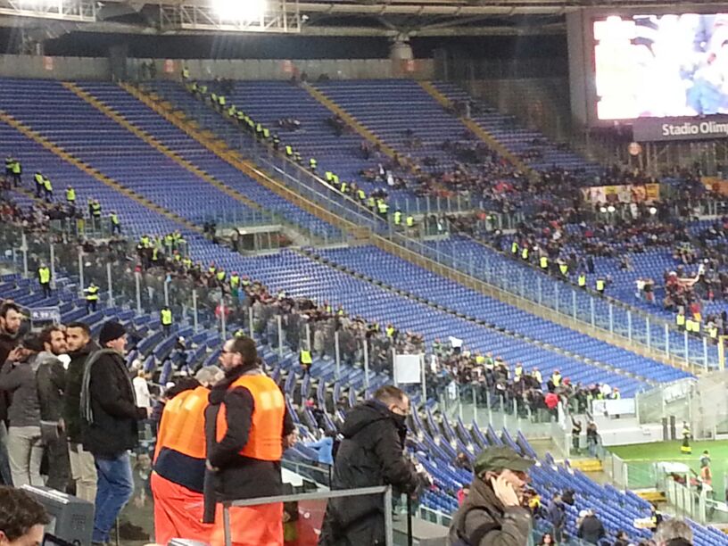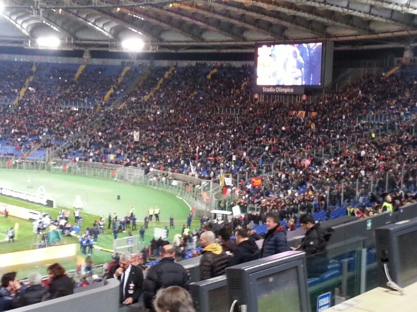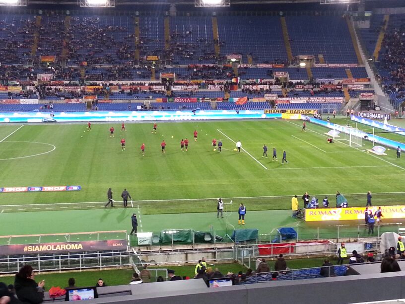 Tuttonapoli.net vi offre direttamente dallo Stadio Olimpico di Roma le immagini dell'impianto capitolino a pochi minuti dal fischio d'inizio della semifinale di Coppa Italia Roma-Napoli.
