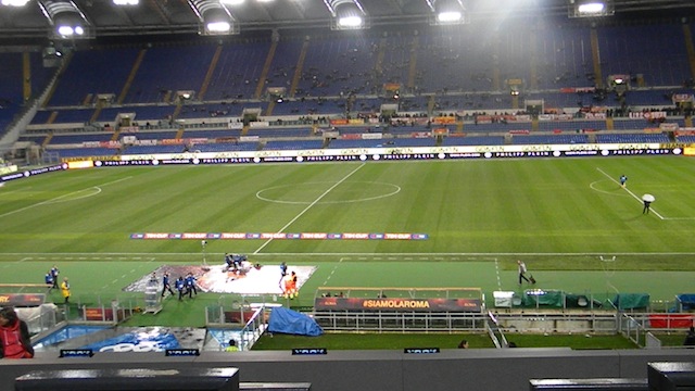 Dopo un violento acquazzone che si è abbattuto sulla città intorno alle 18.30, in questo momento a Roma non piove. Gli addetti allo stadio hanno tolto i teloni proprio alcuni minuti fa, il manto erboso sembra in buone condizioni: in questo momento la partita non è a rischio.