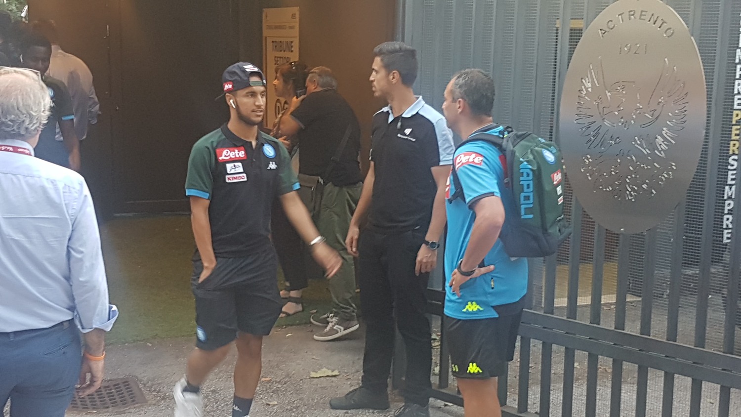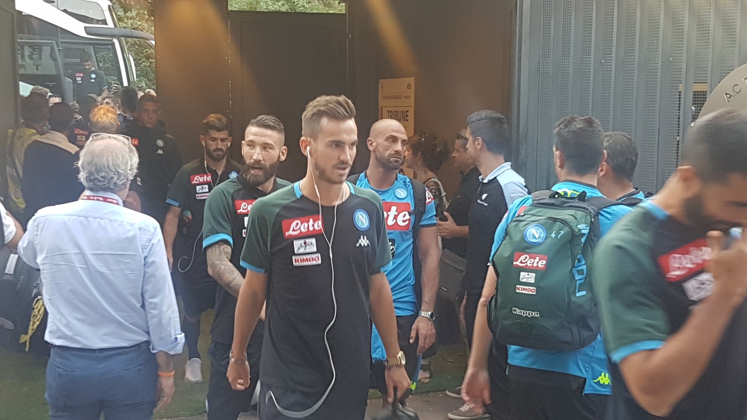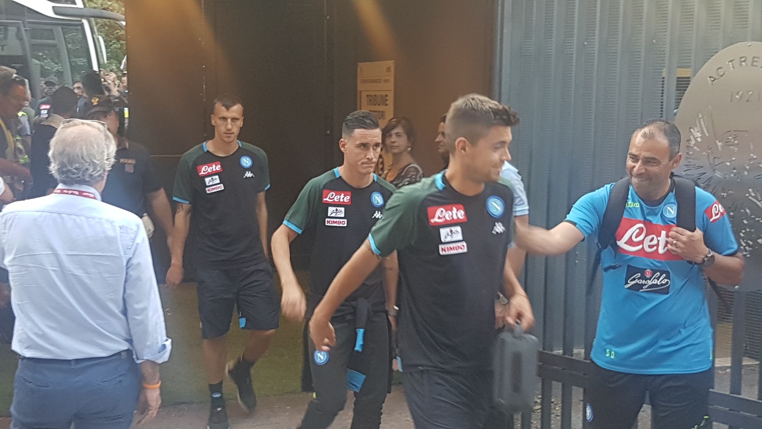 Il Napoli è arrivato allo stadio Briamasco di Trento per l'amichevole di questa sera col Chievo Verona. In basso, le immagini del gruppo partenopeo, nell'impianto da pochi minuti.