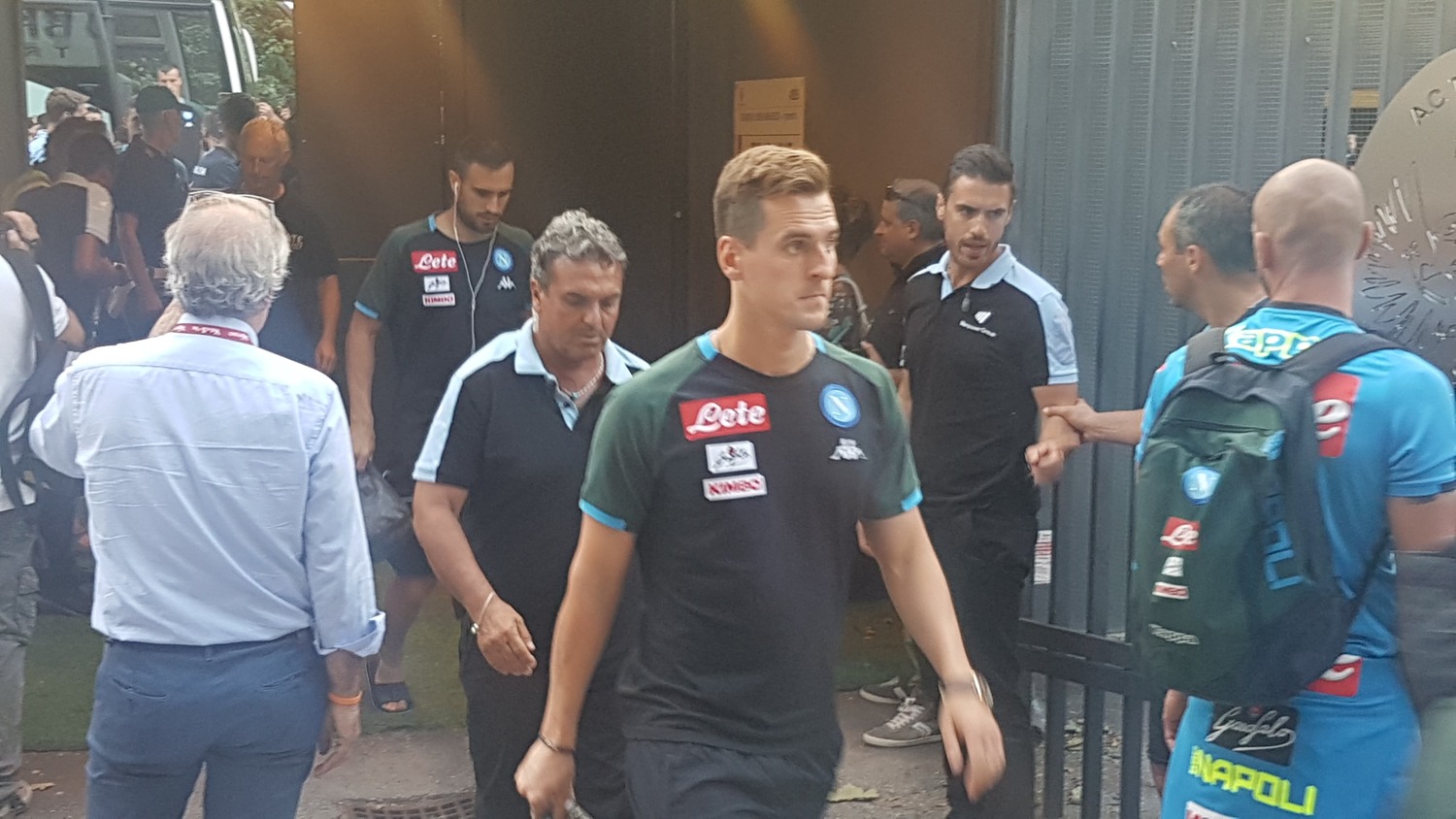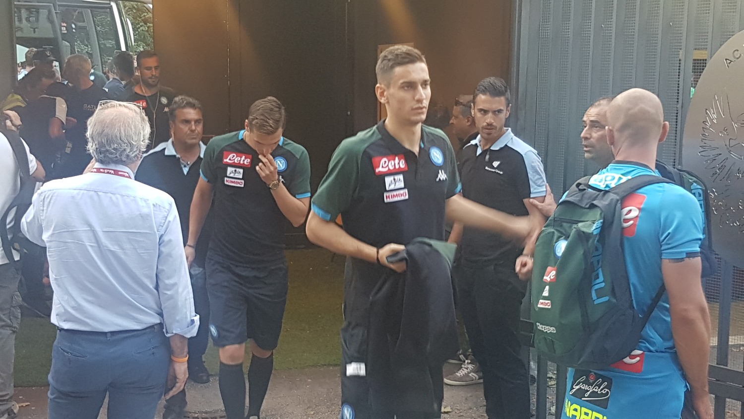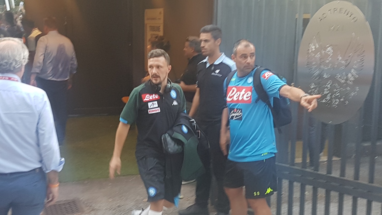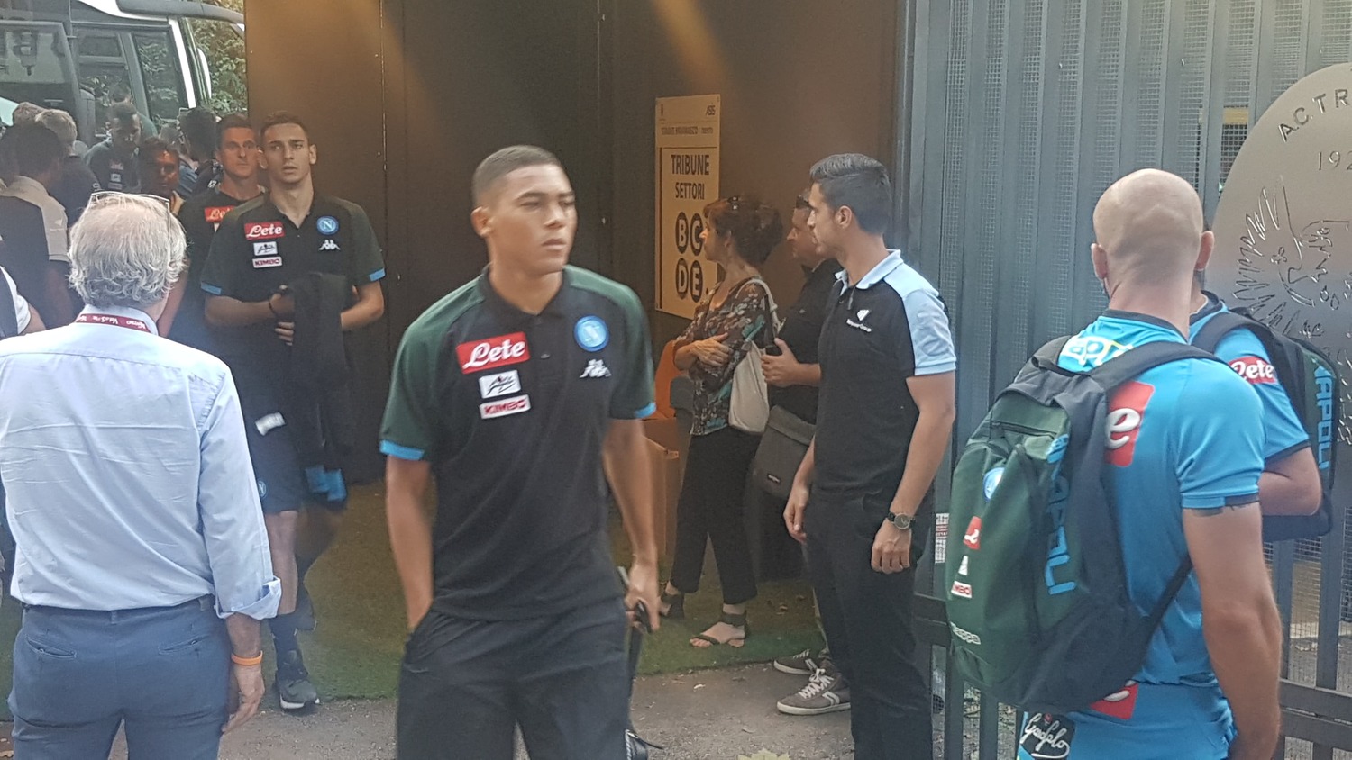 Il Napoli è arrivato allo stadio Briamasco di Trento per l'amichevole di questa sera col Chievo Verona. In basso, le immagini del gruppo partenopeo, nell'impianto da pochi minuti.