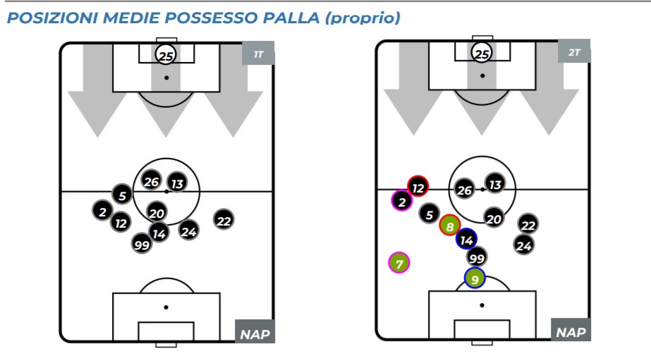 Tante le critiche rivolte a Carlo Ancelotti per la posizione di Elmas con la Spal . In realtà la posizione di destra nel 4-4-2, come appare disegnata nel campetto di presentazione delle partite, è solo in fase difensiva. "Ha giocato centro-destra, come Fabian nella parte finale. Non era fuori ruolo. A destra ha fatto solo la fase difensiva, come capita sempre", le parole di Ancelotti nel post-partita, che trovano conferma nel grafico di seguito delle posizioni medie rilevate dalla Lega Serie A. Nello sviluppo del gioco, Elmas ha ricoperto quel ruolo stringendo molto verso il campo, favorendo la spinta di Malcuit, come spesso avvenuto per Zielinski o Fabian a sinistra quando si spingeva a sinistra con Mario Rui terzino di spinta, fino all'infortunio. Interpretazione che spesso ha avuto anche Callejon, stringendo dentro vicino ai centrocampisti. Nessun dubbio sulla prova negativa del giovane macedone '99, ma non sempre una prova individuale è causata dal ruolo o dall'interpretazione tattica.
