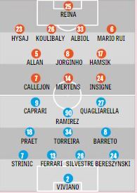 Nessun dubbio, nessun interrogativo della vigilia, nessun problema. Maurizio Sarri scenderà in campo con la formazione tipo contro la Sampdoria. Non dovrebbero esserci sorprese, nè ci sono ballottaggi in corso: davanti a Reina la linea a 4 è formata da Hysaj, Koulibaly, Albiol e Mario Rui. A centrocampo Allan, Jorginho e Hamsik. Tridente offensivo composto da Callejon, Mertens e Insigne.