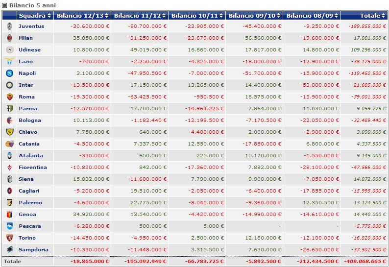 Vi proponiamo una interessante tabella - tratta da Transfermarkt - che evidenzia il computo tra acquisti e cessioni degli ultimi cinque anni. Da notare come l'anno scorso la società partenopea sia addirittura 'rientrata' di 3mln di euro, per poter sopperire alla mancanza della Champions League mentre in totale il club ha speso quasi 120mln di euro. Solo la Juventus ha fatto 'meglio' con 190mln di euro.