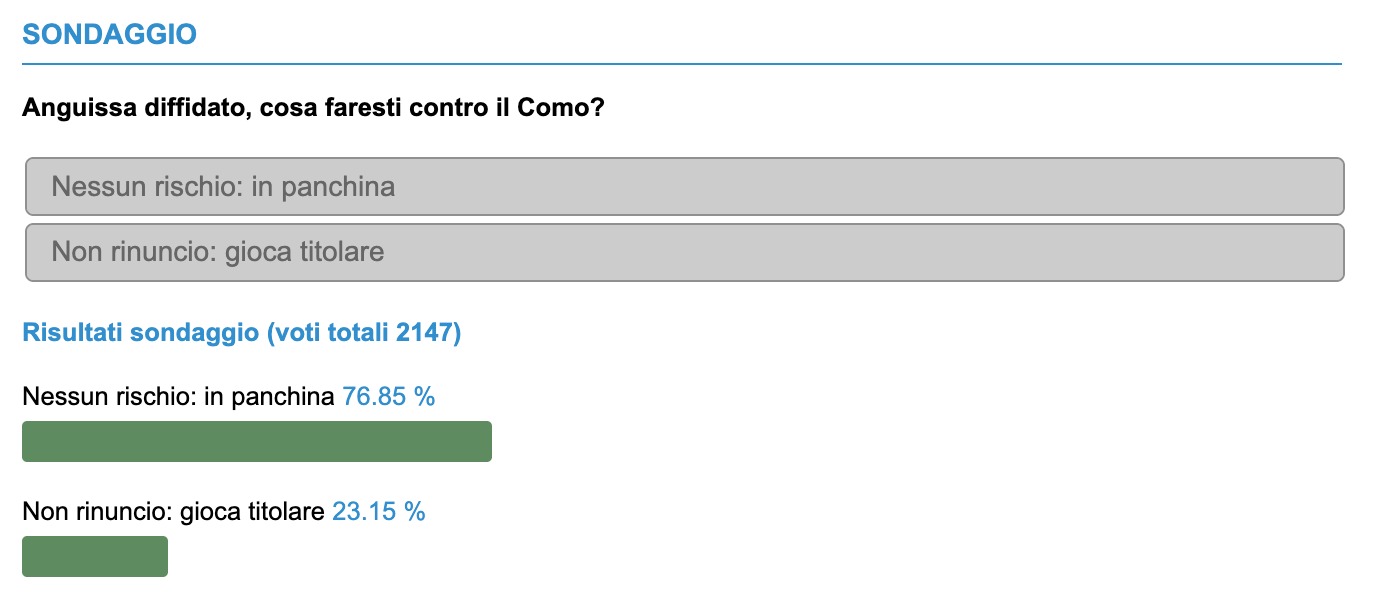 È interessante anche notare come, in una situazione analoga, l'allenatore dell'Inter, Simone Inzaghi, stia considerando di tutelare i suoi giocatori diffidati, come Barella, Bastoni e Mkhitaryan, evitando di schierarli nella prossima partita contro il Genoa per preservarli in vista dello scontro con il Napoli. In calce i risultati del sondaggio: