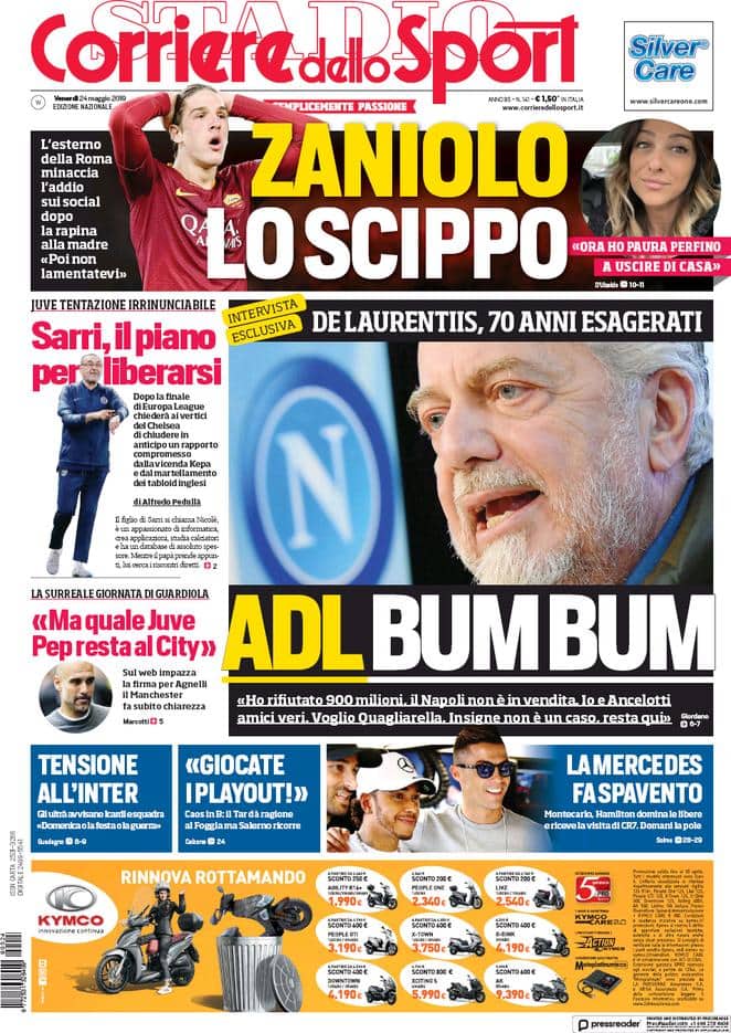 PRIMA PAGINA - ADL al CdS: "Il Napoli non è in vendita! Voglio Quagliarella, nessun caso Insigne..."