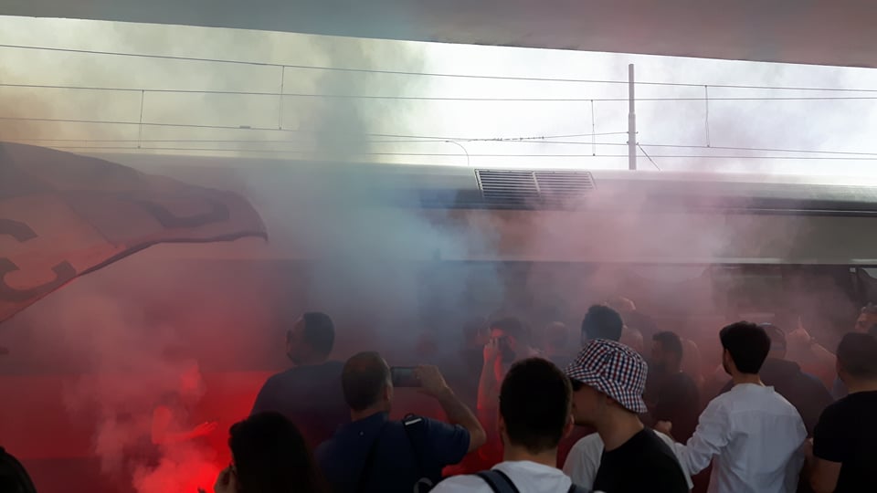 RILEGGI LIVE - Napoli partito da Gianturco, una delegazione ultras li incita all'esterno del treno: in piazza oltre 5000 tifosi