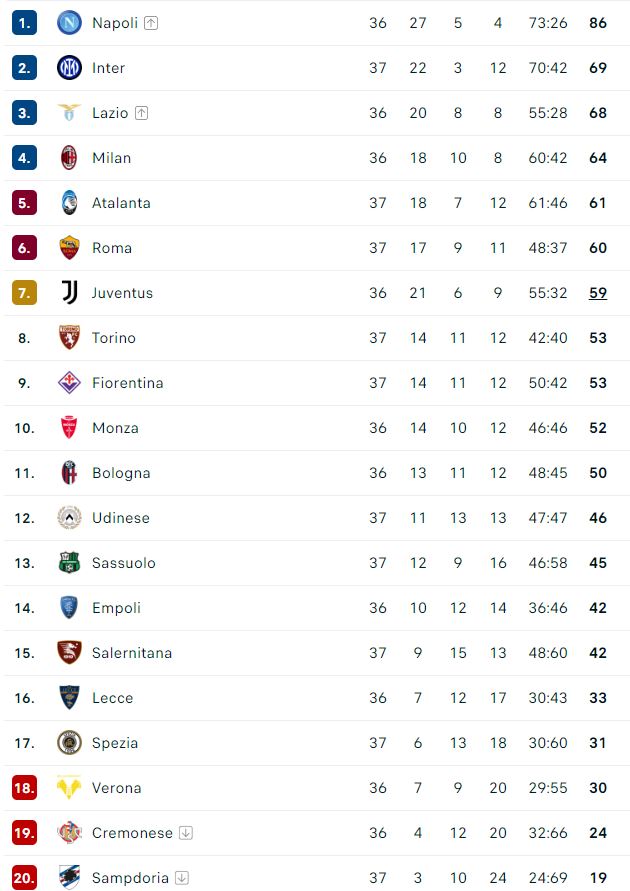 CLASSIFICA - Inter e Milan qualificate in Champions! L'Atalanta non ha più chance