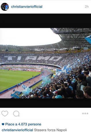 Anche l'ex calciatore Christian Vieri ha deciso di mostrare stasera il suo appoggio al Napoli mostrando una storica coreografia della Curva B su Instagram con un chiarissimo messaggio: "Stasera forza Napoli!".
