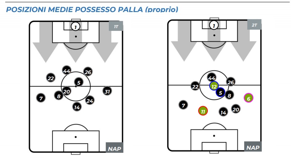 Il Napoli gioca allo stesso modo dell'anno scorso, ora molti hanno delle convinzioni ma qui non siamo nel campo delle opinioni. Molti sono impreparati. Ormai con le posizioni medie dal satellite che fornisce la Lega, capiamo che il Napoli gioca esattamente come l'anno scorso. Giocando così il Napoli ha vinto 25 gare, creando quasi sempre il doppio degli avversari e per due partite così non si può rinnegare l'idea di gioco. Molti in tv vanno per la cosa effetto e chi urla 'bisogna passare 442, 433', 'quello non deve giocare. Molti ormai stanno mandando fuori strada i tifosi. Ad ogni partita noi mostriamo le posizioni medie del satellite, non quindi le nostre opinioni. Il Napoli non ha cambiato rispetto all'anno scorso, possiamo chiamarlo come vogliamo il modulo, ma è 442 in fase difensiva con gli esterni che non lasciano soli i centrocampisti e in fase di possesso si parte dalla costruzione da dietro con 2 o 3 difensori e poi sviluppa in diversi modi in base a avversari e caratteristiche degli interpreti. Dopo Napoli-Sampdoria lo chiederò anche ad Ancelotti nella mia solita intervista post-partita, gli dirò 'visto che non mi stanno a sentire, se tu la ribadisci è meglio' (ride, ndr)".