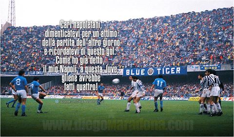 Il pibe de Oro ha voluto ricordare quel giorno attraverso il suo profilo Facebook: "Cari napoletani, dimenticatevi per un attimo della partita dell'altro giorno e ricordatevi di questo gol. Come ho già detto, il mio Napoli, a questa Juve, gliene avrebbe fatti quattro!".
