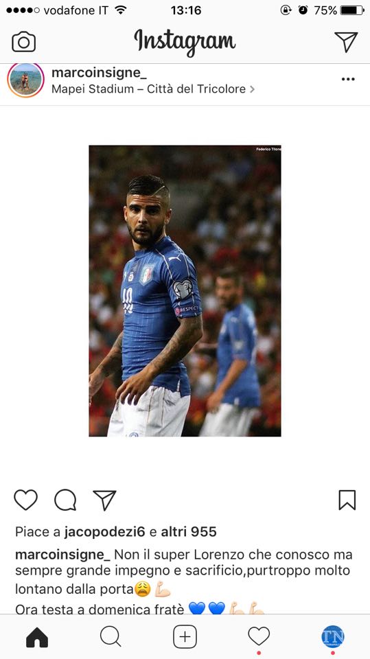 "Non il super Lorenzo che conosco, ma sempre grande impegno e sacrificio, purtroppo molto lontano dalla porta. Ora testa a domenica fratè", il messaggio pubblicato su Instagram da Marco Insigne, fratello di Lorenzo.
