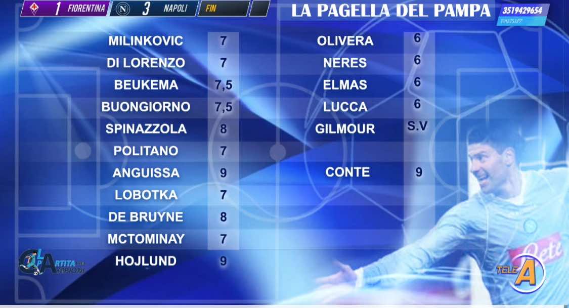 L'ex attaccante azzurro Roberto 'Pampa' Sosa, ai microfoni di Tele A nel corso de 'La Partita dei Campioni', ha dato il suo giudizio su Fiorentina-Napoli 1-3: "È la vittoria di Conte per me. Col Cagliari non mi era piaciuto e gli avevo dato 6, ora invece ha dato il giusto atteggiamento, abbiamo visto un calcio importante ed anche cambi per la gestione". Di seguito le pagella complete.