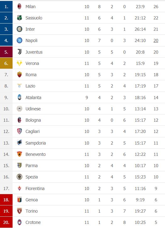 CLASSIFICA - L'Hellas Verona sale a -1 dal Napoli che può staccare la Lazio