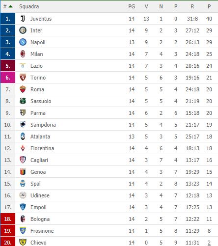 Un punto che forse non fa felice l'Inter, ma nemmeno la Roma. All'Olimpico finisce 2-2 e i nerazzurri agganciano il Napoli in classifica al secondo posto, in attesa del posticipo che vedrà gli azzurri impegnati domani sera, ma scivolano a -11 dalla Juventus. I giallorossi salgono a 20 punti in settima posizione, a cinque punti dalla zona-Champions League. Di seguito la classifica: