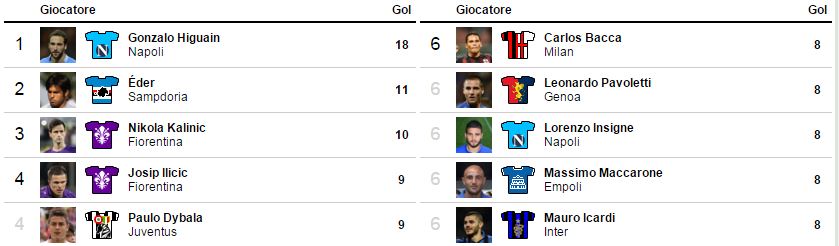 Numeri stratosferici per Gonzalo Higuain. Il Pipita ha segnato addirittura 18 gol in 19 partite di questo girone d'andata, elevandosi in vetta alla classifica marcatori, a +7 sul primo inseguitore, Eder. Pazzesco il Pipita: la proiezione delle realizzazioni porterebbe a 36 reti a fine campionato!