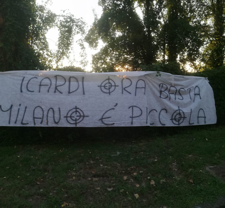 Striscione minaccioso esposto sotto casa #Icardi pic.twitter.com/DnGyOUlqzD