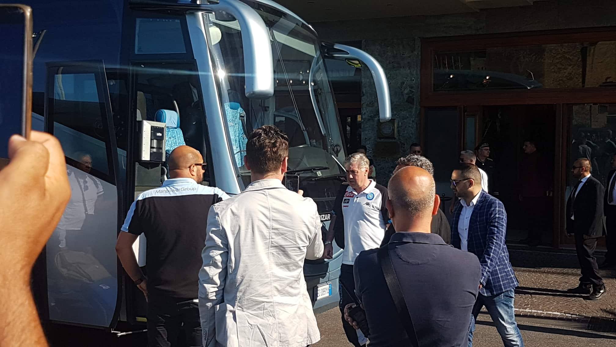 FOTO - Ancelotti raggiunge i giocatori sul pullman, dall'Hotel Vesuvio sbucano altri azzurri