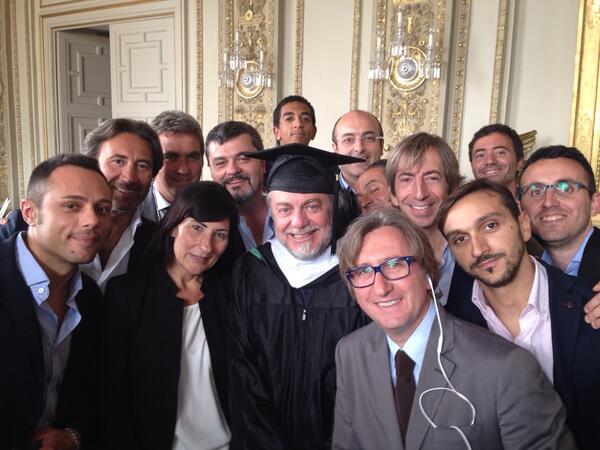 “Un selfie col dottor De Laurentiis”. Questo il messaggio su Twitter del giornalista Raffaele Auriemma, il quale ha postato una foto col presidente del Napoli dopo aver ricevuto la laurea honoris causa dall’American University di Roma.