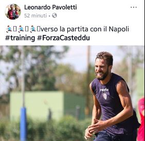 "Allenamento verso la sfida col Napoli". E' questo il post publiccato da Leonardo Pavoletti in vista di Cagliari-Napoli, match in programma domenica alle 12.30. Ecco la foto a corredo: