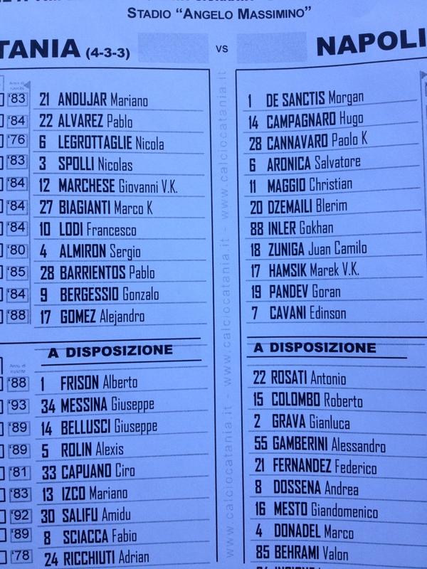 FOTO - Catania-Napoli, ecco la distinta ufficiale
