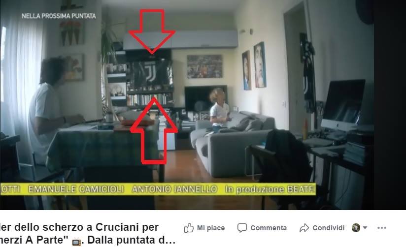 FOTO - Cruciani vittima di "Scherzi a parte", nel salotto spunta una bandiera della Juve...