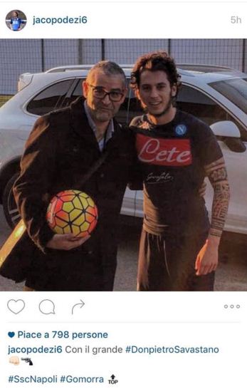 Jacopo Dezi, centrocampista del Napoli, ha incontrato Fortunato Cerlino, il Don Pietro Savastano di "Gomorra - La Serie". Il giocatore ha pubblicato una foto su Instagram: "Con il grande Don Pietro Savastano", ha scritto. Ecco la foto: