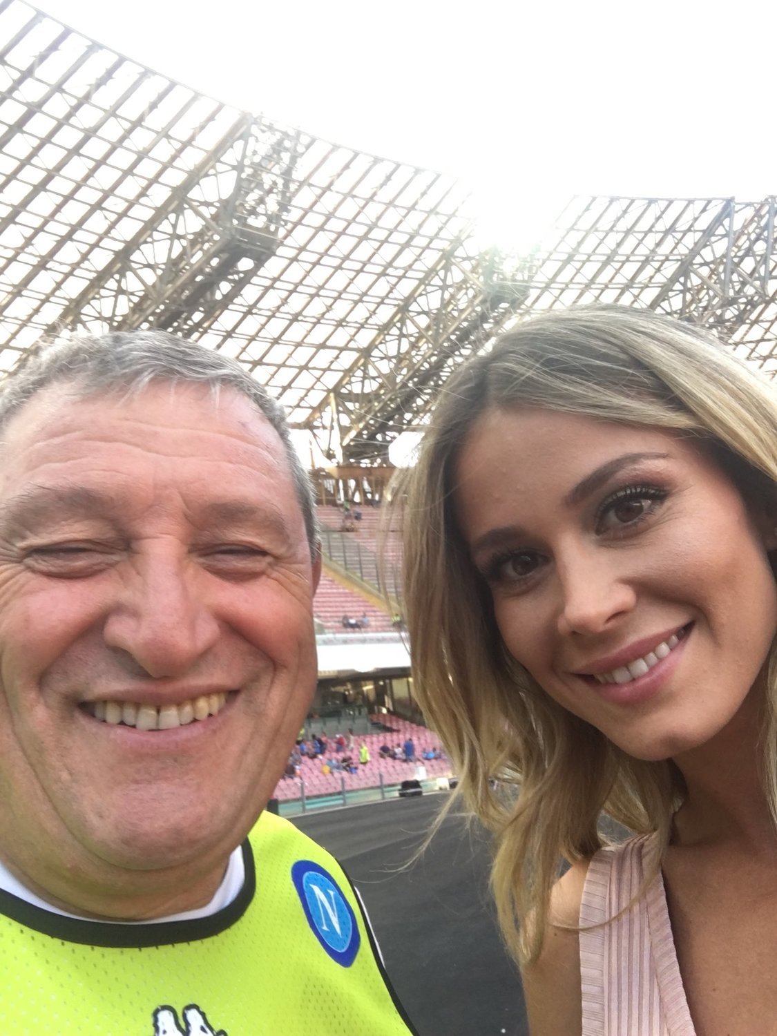 Stasera esordio al San Paolo per DAZN e Diletta Leotta è già a bordocampo: il magazziniere azzurro Tommaso Starace non si è fatto sfuggire l'occasione per un selfie con lei, pubblicato su Twitter e visibile in basso.