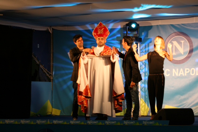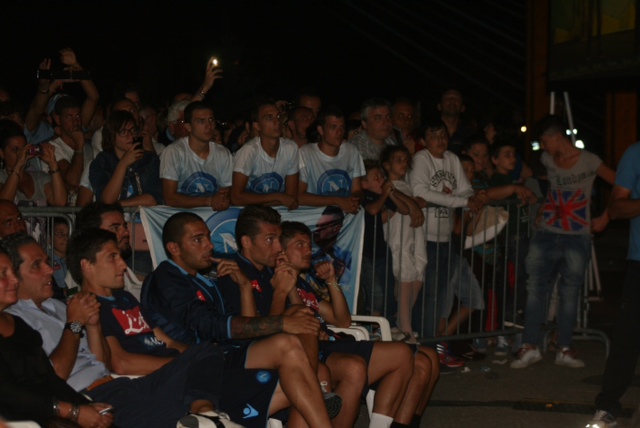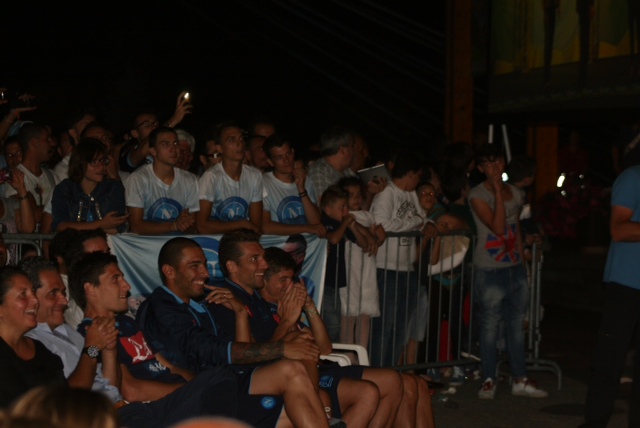 Queste le foto di Tuttonapoli.net da Dimaro, dove questa sera gli azzurri - insieme al presidente De Laurentiis - hanno assistito al simpatico spettacolo dei comici di Made in Sud.