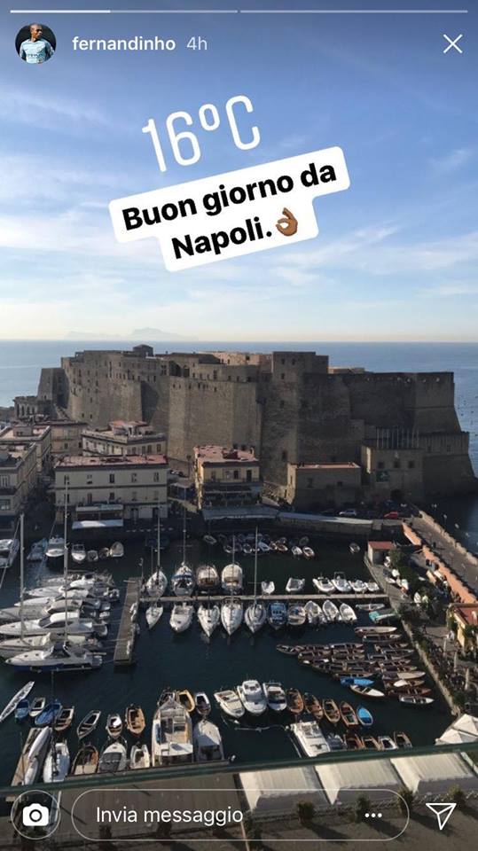 Il panorama di Napoli, si sa, provoca sempre belle sensazioni, a maggior ragione se si vede nel day-after di una vittoria. E' il caso di Fernandinho, centrocampista del Manchester City, che su Instagram ha mostrato il panorama dall'Hotel Vesuvio e scritto: "Buongiorno da Napoli".