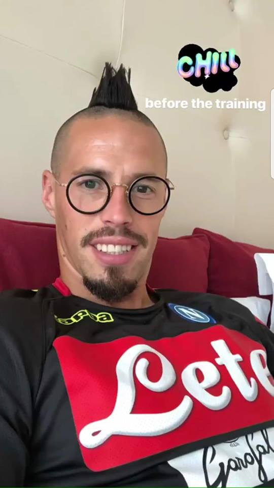 Momento di relax per Marek Hamsik dopo l'allenamento pomeridiano di oggi: in basso, l'immagine pubblicata dal capitano attraverso il suo profilo Instagram.