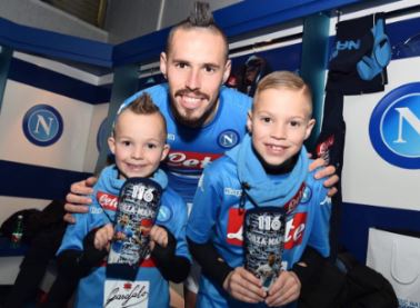 Sorride papà Hamsik, lo fa al fianco dei suoi due figli in uno scatto social che il centrocampista slovacco ha condiviso su Instagram. I figli di Marek stringono forte i parastinchi speciali col numero 116 del record raggiunto contro la Sampdoria. Ecco il post: