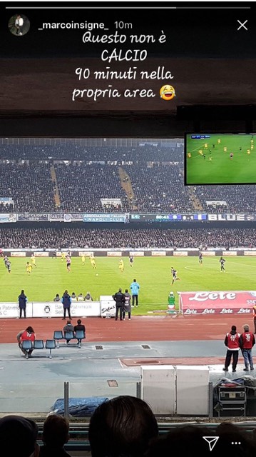 Della sconfitta del Napoli contro la Juventus ha parlato anche Marco Insigne, che ha pubblicato una foto su Instagram ironizzando: "Questo non è calcio, 90' minuti nella propria area..."