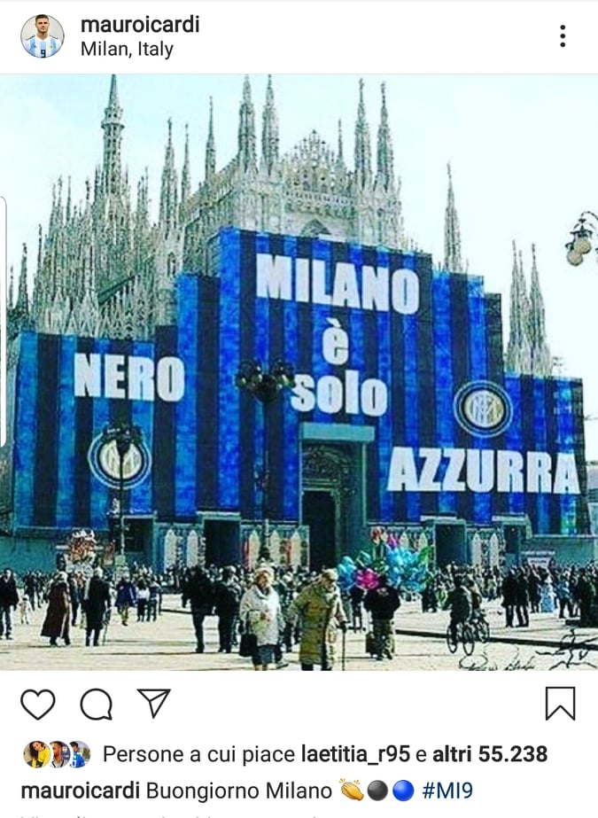 Mauro Icardi rompe il silenzio post-derby su Instagram. All'indomani del 3-2 dell'Inter sul Milan, l'ex capitano ha infatti pubblicato una nuova immagine sul social network: un'immagine del Duomo, con la scritta "Milano è solo nero azzurra".