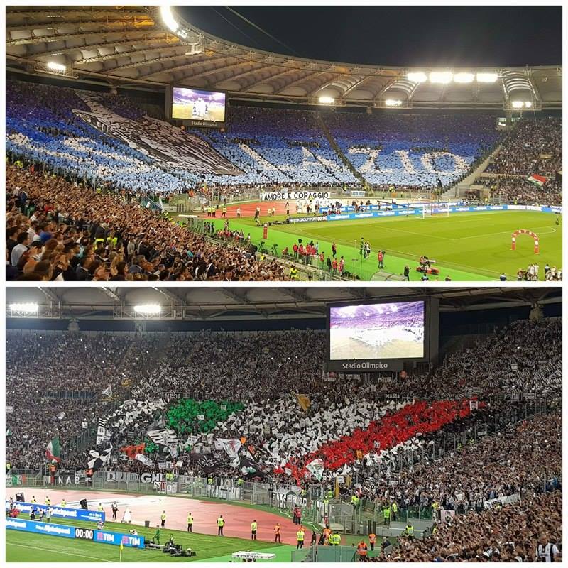 La Juventus strapazza la Lazio in campo, ma sugli spalti a dare spettacolo sono i sostenitori biancocelesti, con una coreografia incantevole. I tifosi bianconeri, invece, sono stati protagonisti di una figuraccia, sbagliando la coreografia. Ecco la foto tratta dal web:
