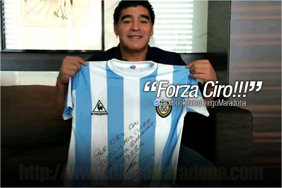 FOTO - Maradona mostra il regalo per Ciro Esposito attraverso il suo profilo Facebook: "Forza!"