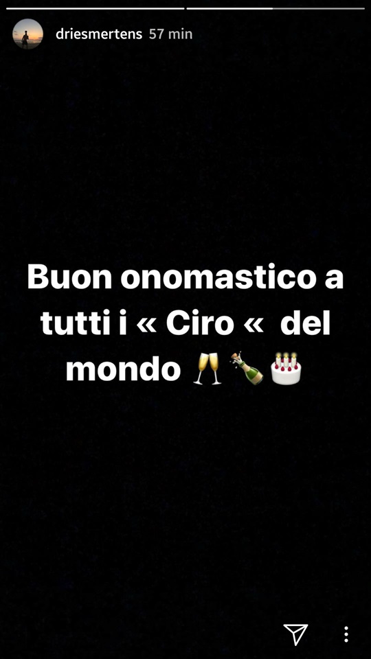 Simpatica immagine pubblicata da Dries Mertens su Instagram: l'attaccante azzurro ha festeggiato San Ciro, il nome ormai utilizzato da tutta la città per ribattezzarlo, con un fotomontaggio e un messaggio d'auguri.