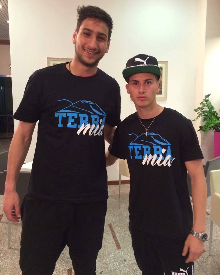 Giocherà anche a Milano, ma Gianluigi Donnarumma non rinnega le sue origini. La sua Castellammare, lì, a pochi chilometri dal Napoli. Lui e anche Cosimo La Ferrara, altro giovane talento rossonero made in Napoli. Il portierone ha pubblicato una foto su Facebook insieme al suo compagno partenopeo, scrivendo "Siamo figli del Vesuvio", e con tanto di maglia con scritto "Terra mia".