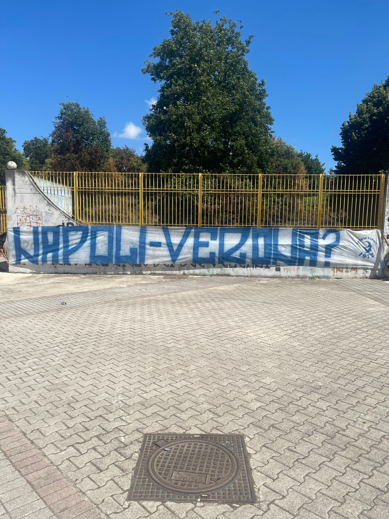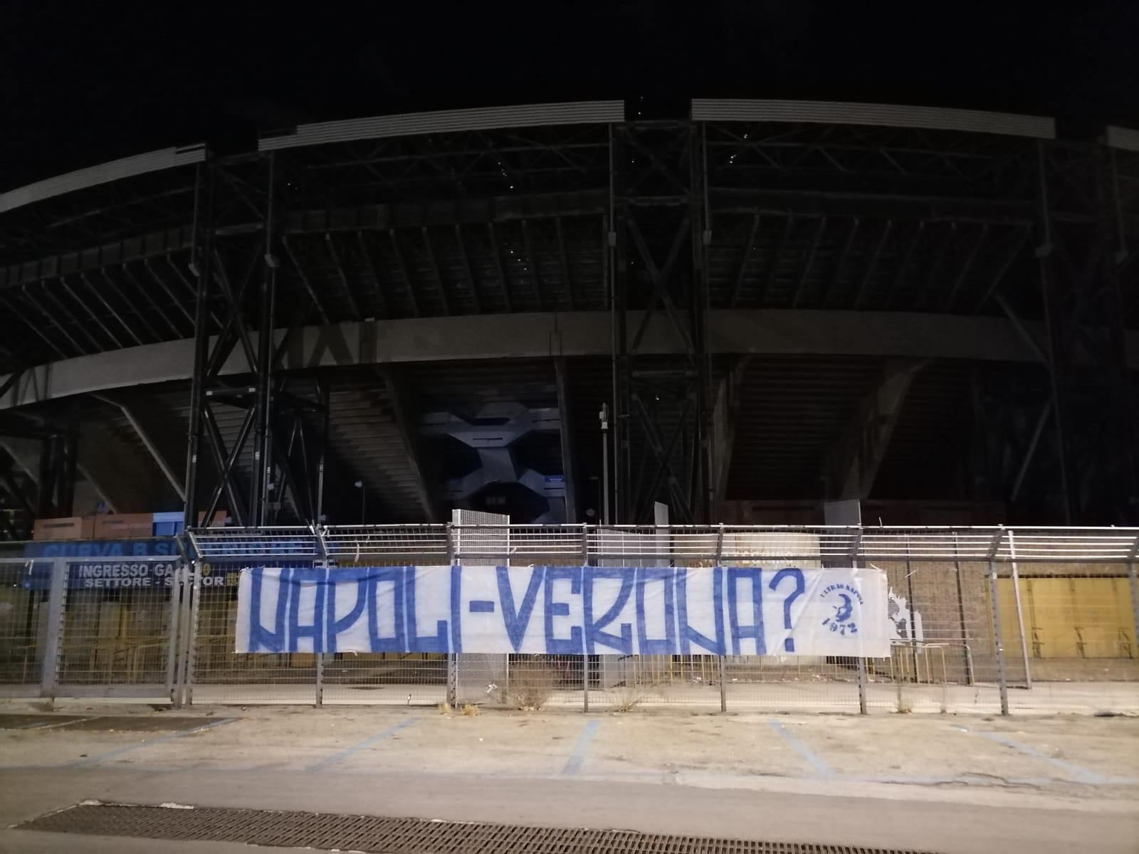 I tifosi del Napoli continuano a chiedere spiegazioni per l'ultima giornata di campionato tra Napoli e Verona. Il pareggio che è costato la Champions non è ancora andato giù ai supporters azzurri. Per questo motivo gli Ultras '72 hanno tappezzato Napoli e dintorni di striscioni con la scritta: "Napoli-Verona?". Di seguito gli scatti.