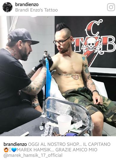 Ancora un tatuaggio per Marek Hamsik. Il capitano azzurro è stato oggi allo shop di Enzo Brandi, il suo tatuatore di fiducia, per farsi marchiare nuovamente la pelle. Ecco l'immagine pubblicata dall'artista su Instagram:
