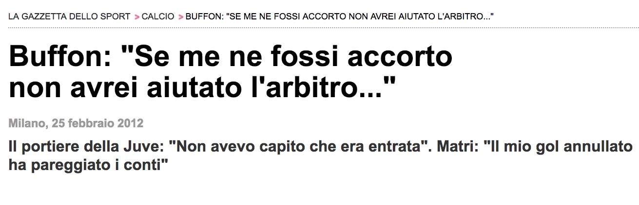 "Non me ne sono reso conto e sono onesto nel dire che se me ne fossi reso conto non avrei dato una mano all'arbitro". Gigi Buffon parlava così dopo la sfida Milan-Juve del 25 febbraio 2012 in merito all'incredibile gol non concesso ai rossoneri su tiro di Muntari. Al tempo le parole del numero uno bianconero vennero quasi celebrate per il coraggio di ammettere la verità, mentre invece in questi giorni i media stanno demonizzando Pepe Reina, tirando in ballo questioni di etica e lealtà per l'episodio che lo ha visto protagonista con Silvestre. Chissà cosa sarebbe accaduto, e che risalto avrebbe avuto la vicenda, se al posto di Reina ci fosse stato il Gianluigi bianconero. In Italia certe cose non cambieranno mai..