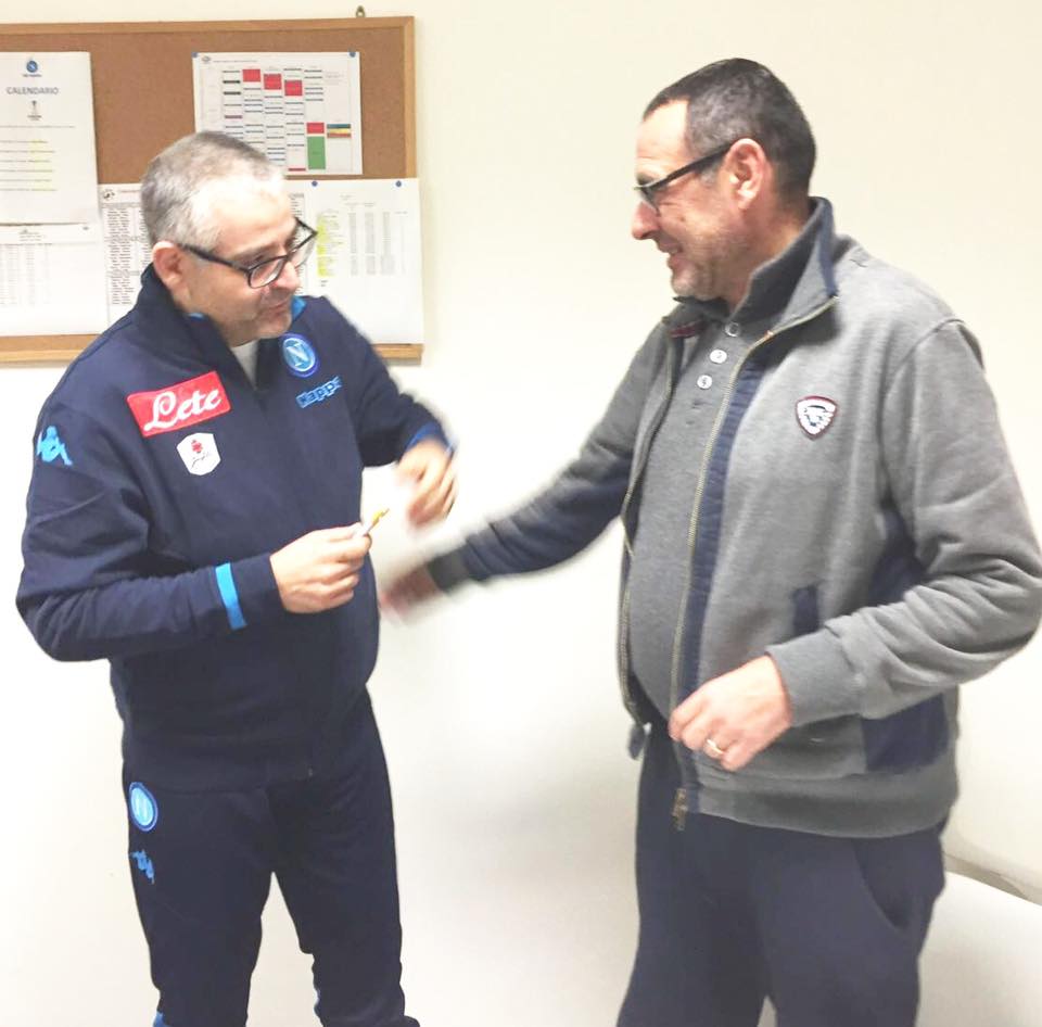 FOTO - Sarri incontra Fortunato Cerlino, il 'Don Pietro' di Gomorra: "Grazie mister!"