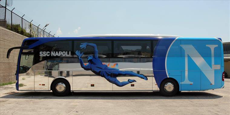Un Team Bus che unisce stile ed eleganza in linea con il design della SSC Napoli.