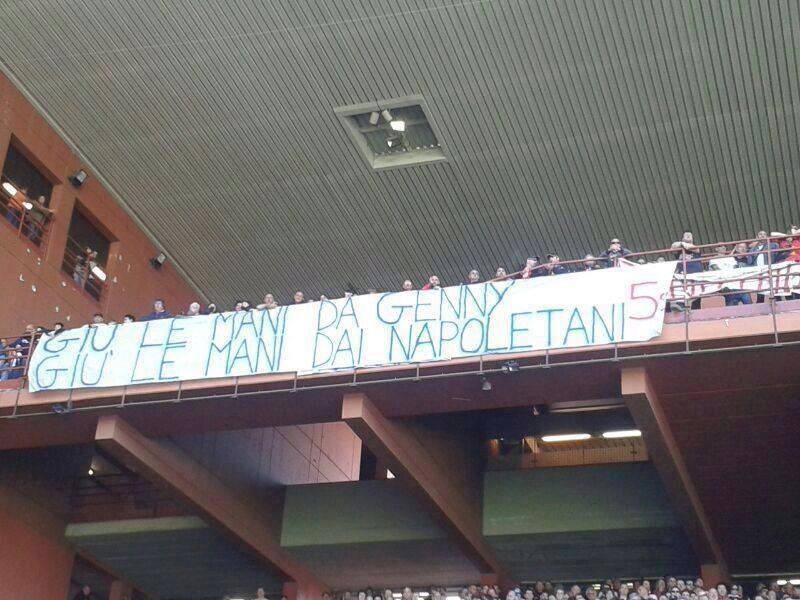 FOTO - Striscione dei genoani: "Giù le mani da Genny e dai napoletani"