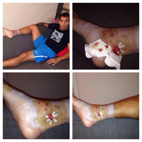 FOTO - Tevez mostra la ferita: "Solo un'ammonizione per chi mi ha quasi rotto la caviglia"