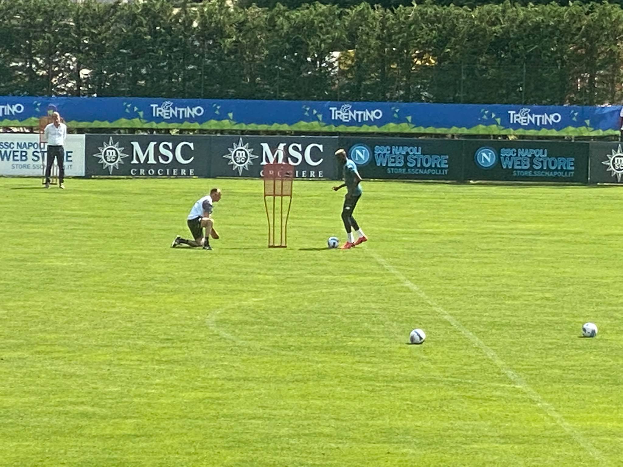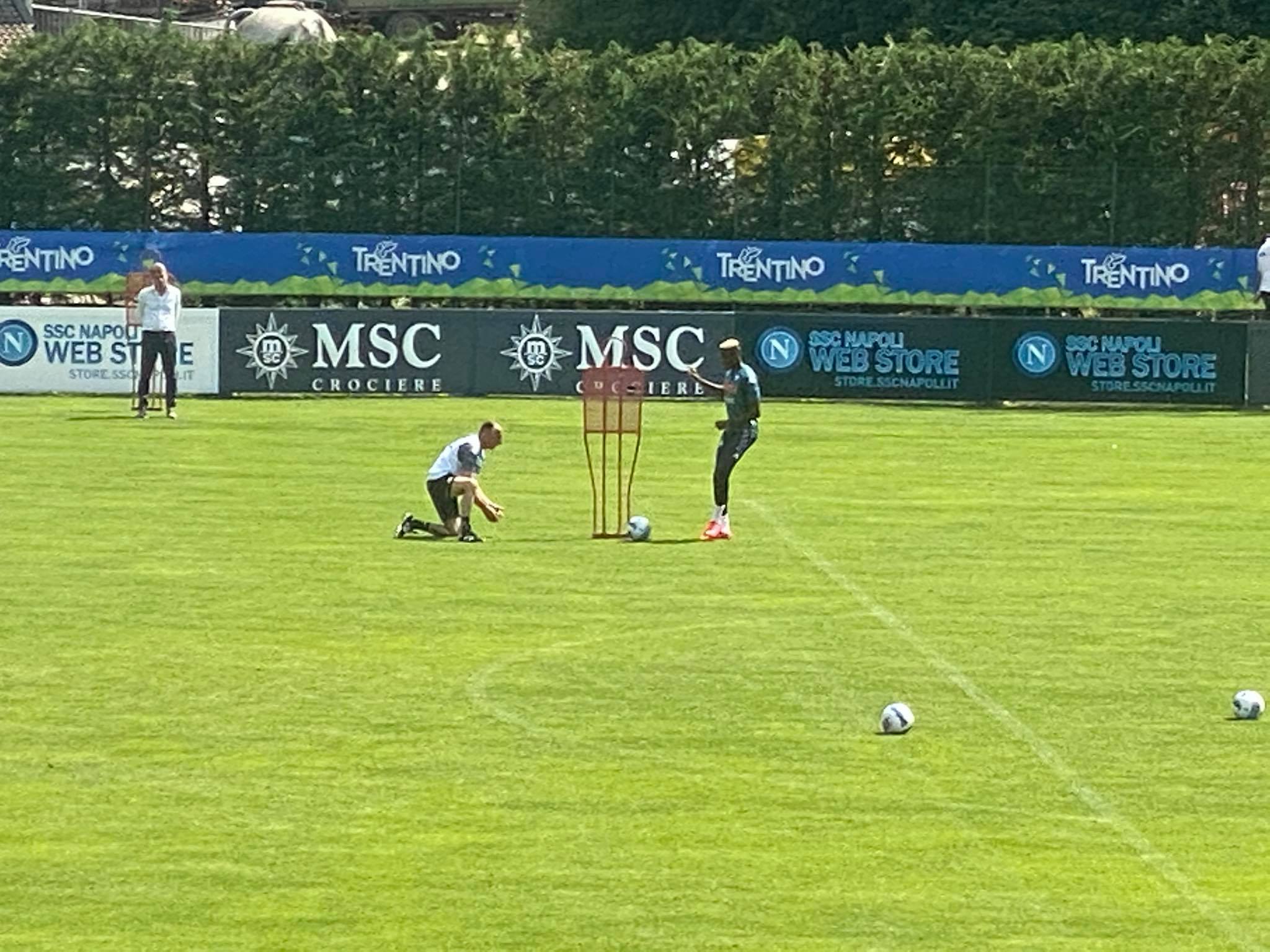 Solo un calciatore è ancora in campo a Carciato. Finito l'allenamento, Victor Osimhen resta insieme allo staff per un lavoro supplementare sulla tecnica individuale. Il centravanti nigeriano si dedica al palleggio e passaggio al volo, un fondamentale che deve migliorare anche per il nuovo lavoro di sponda che gli chiede Luciano Spalletti. Di seguito lo scatto a cura dei nostri inviati.